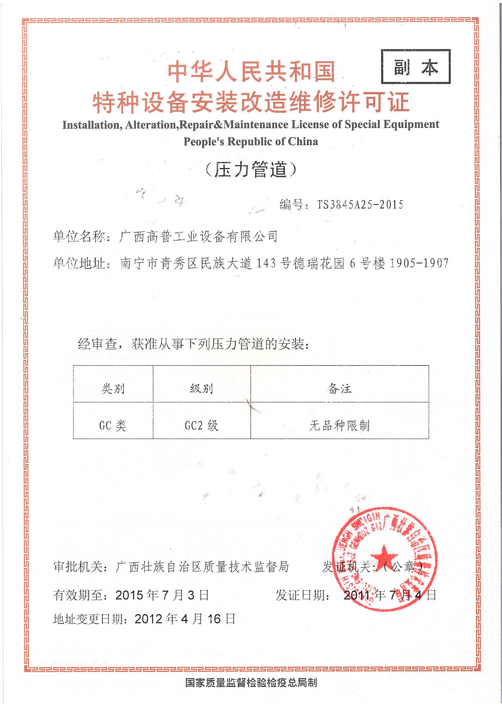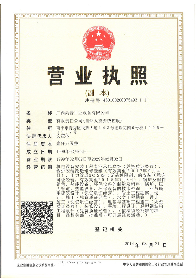 廣西高普工業(yè)設備有限公司的前身是南寧高普熱能設備有限公司,是一家成立于1998年,具有獨立企業(yè)法人資格的的有限責任公司。公司總部設在廣西首府南寧。在云南、宜賓等多處地方、地區(qū)設有辦事及分公司。 本公司是高新技術企業(yè),持有國家技術監(jiān)督局頒發(fā)的1級《特種設備安裝、改造、維修(鍋爐)》許可證,1級許可證是最高級別,可安裝、改造、維修任何形式、參數(shù)的鍋爐設備。并持有《壓力管道》安裝、改造維修許可證,1級《壓力容器》安裝、改造、維修,機電設備安裝工程專業(yè)承包3級等資質(zhì)。 公司擁有雄厚的人力資源和技術裝備力量。在現(xiàn)有正式員工中,鍋爐及相關專業(yè)工程技術人員55名,其中高級工程師10名,工程師32名。持證焊工55名,持有合格項目七十多項次,項目中包含了一類鋼種和二類鋼種的各種形式的電弧焊及氬弧焊。無損檢測人員11人,Ⅲ級2人,II級9人,項目包括含常規(guī)四種探傷方法。機電設備安裝專業(yè)工程人員58人,撻有相關專業(yè)證書涵蓋40多項專業(yè)項目。其中:宜賓分司駐有員工108人,其中工程技術人員23人,高級工程師3人,工程師7人,助理工程師13人,持證焊工20人,II級無損檢測人員5人。 本公司多年專業(yè)從事鍋爐設備的安裝、改造、維修工作,擁有多名業(yè)內(nèi)知名的鍋爐專家,有技術過硬的施工隊伍,在制糖行業(yè)、造紙、發(fā)電行業(yè)等領域,有良好的聲譽。..詳細